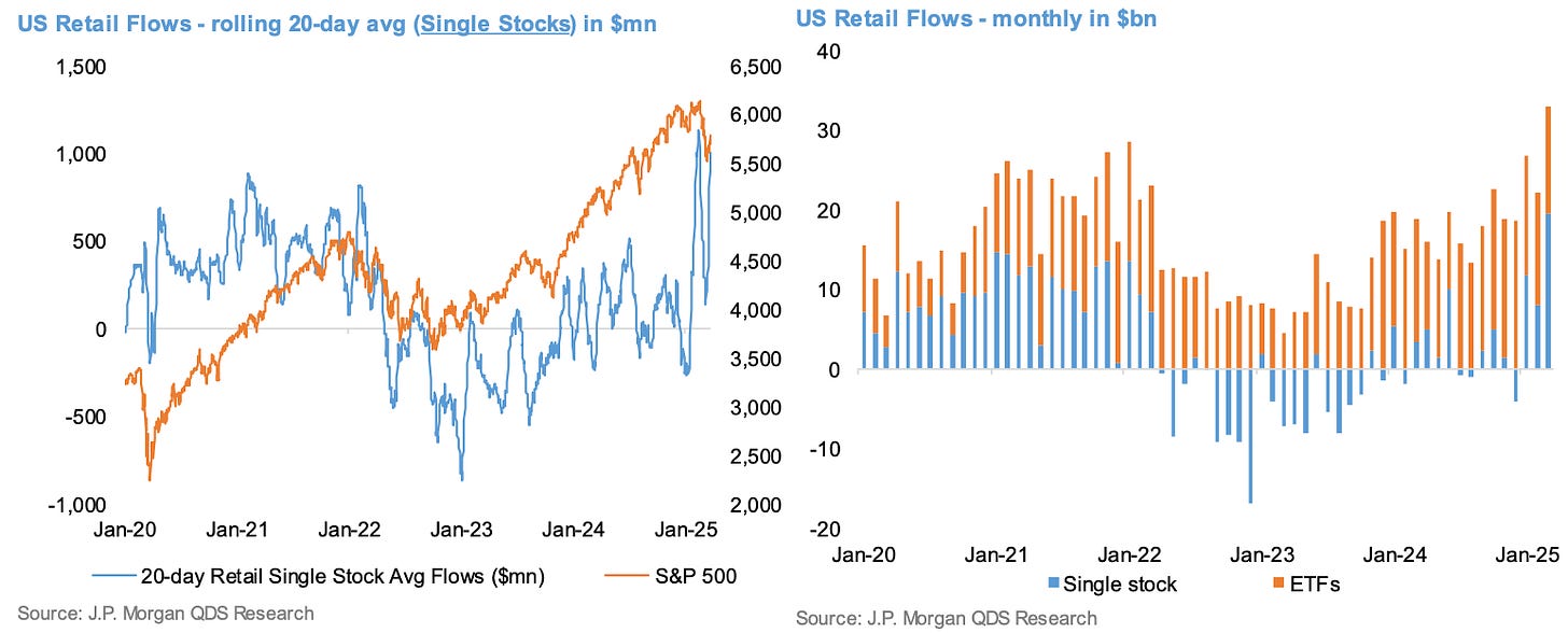 Since early March, we’ve seen positioning unwind among the largest market participants—while retail traders continued to aggressively buy the dip.