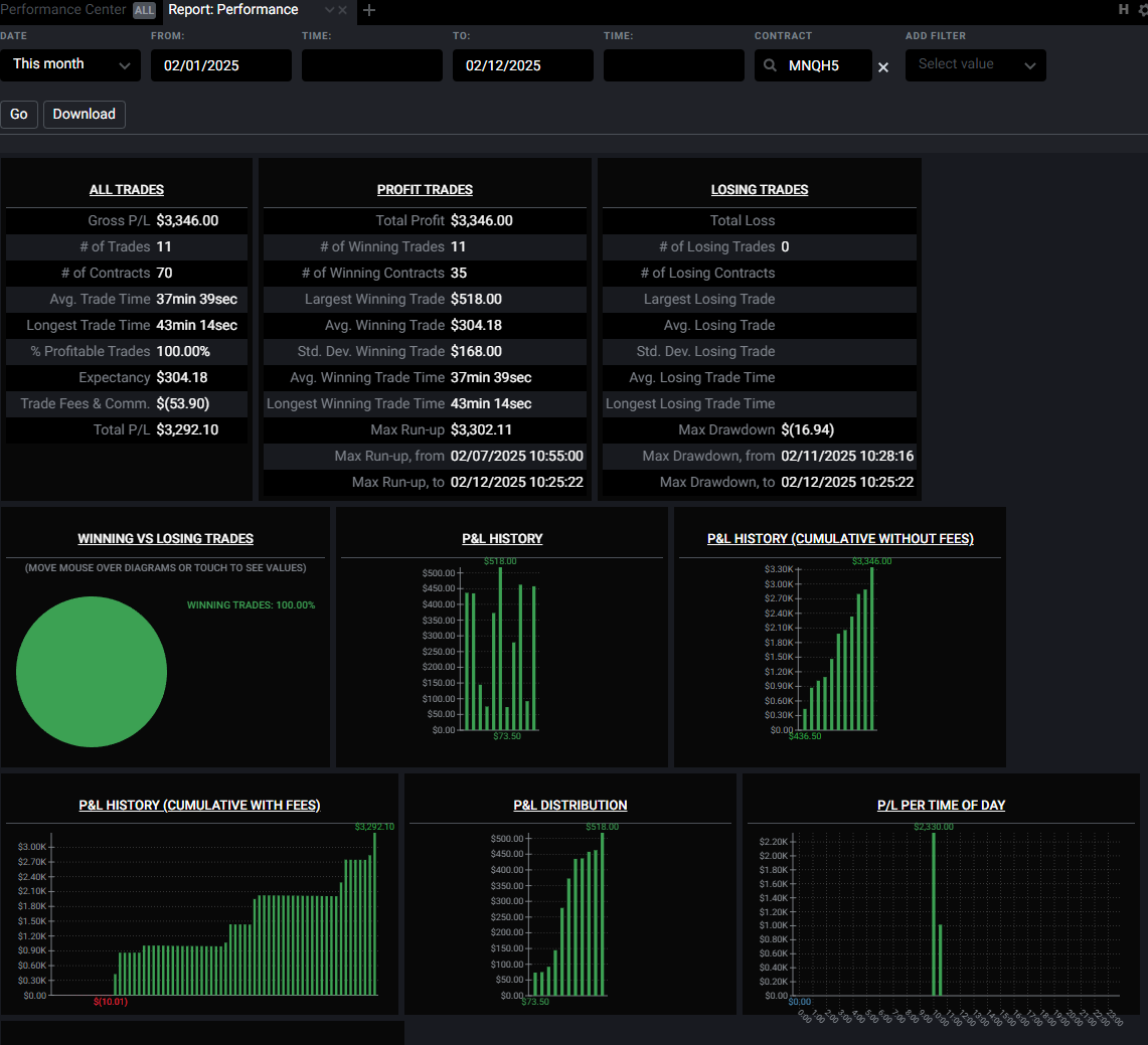 This is from our founder Tucci, trading with the ATS-only algorithm “Qzeus” on a cash account using 3-7 MNQ contracts: