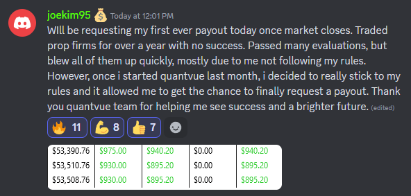 BIG congrats to johnkim95 on a nice 1st ever payout after months of struggling, before finding QuantVue and our incredible community 🔥