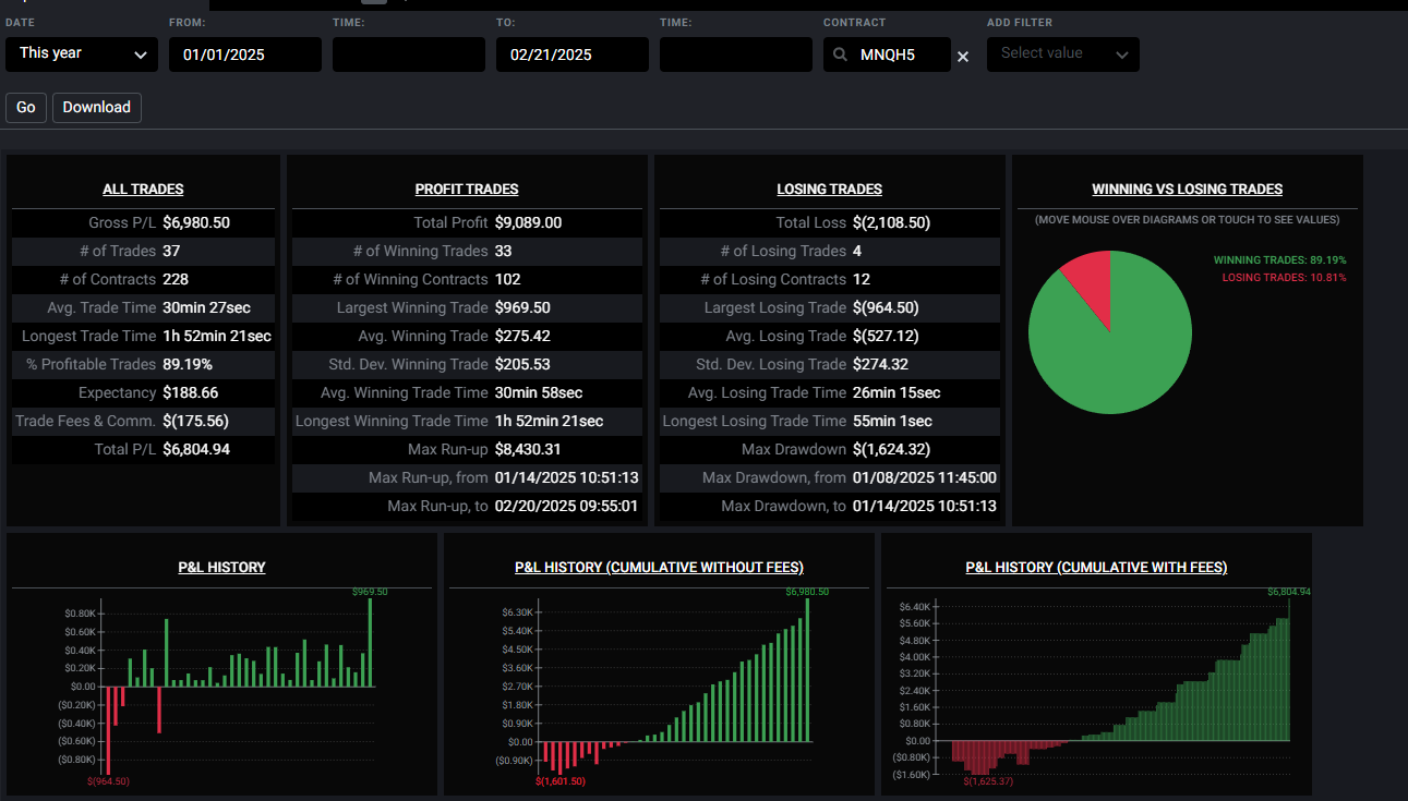 We'll see how the rest of February shapes up! +$6,800 thus far which means an ATS is already paid for. This was using 3MNQ in January, and 7MNQ in February.