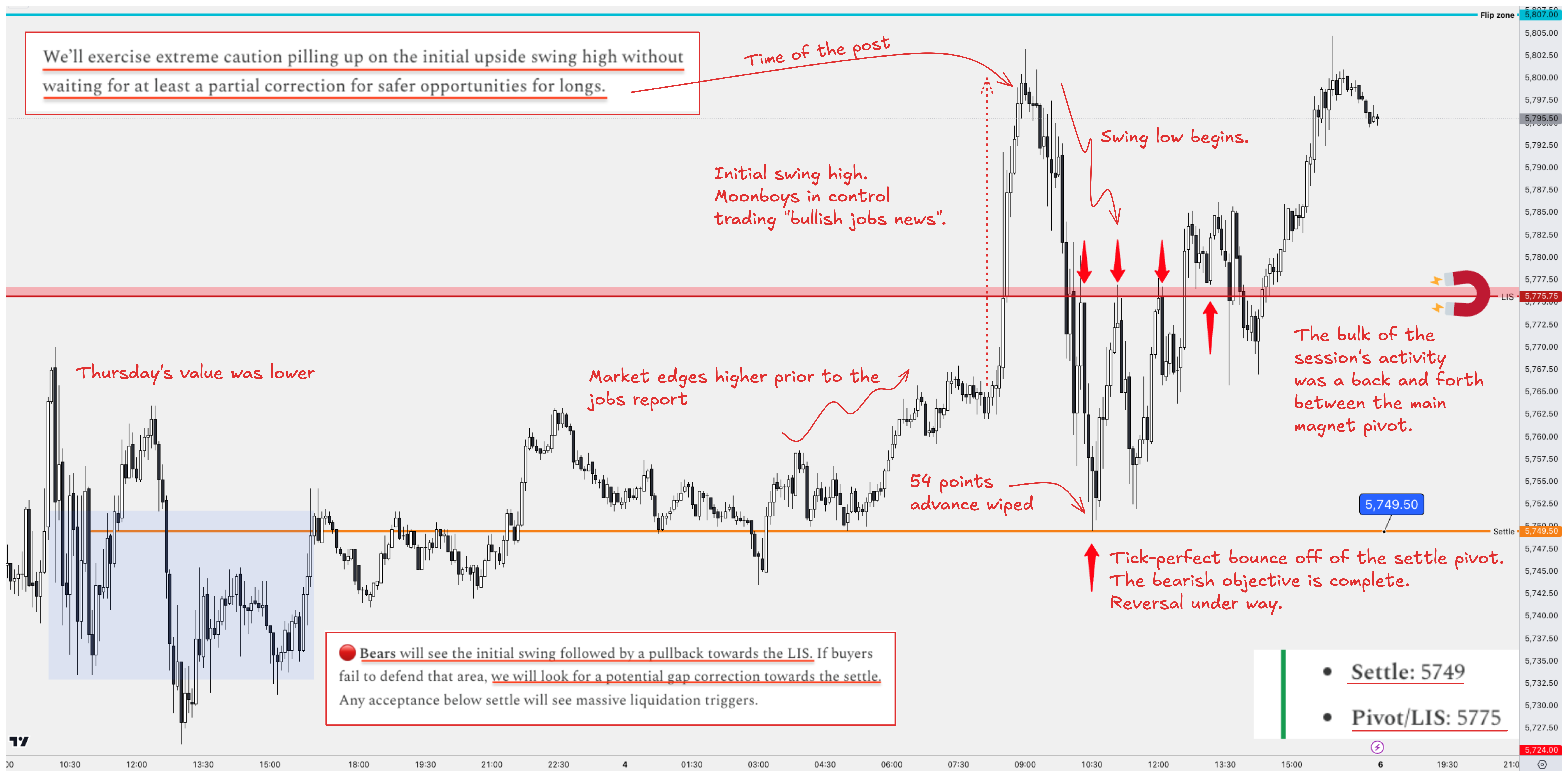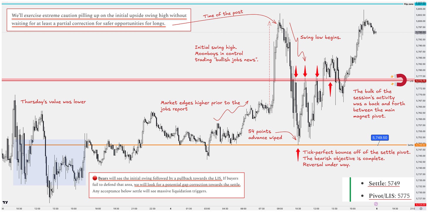 Not only did that exact same instance happen during last Friday's session, but the market also retraced the same swing exactly at the same pivot, the settle.
