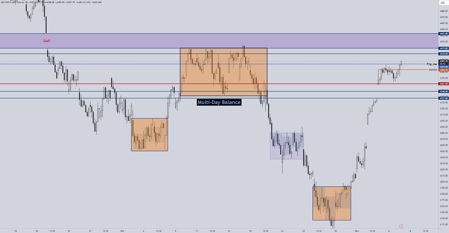 Today’s session saw early strength and an attempt to breakout from the 2-day balance area formation we’ve had since Friday.