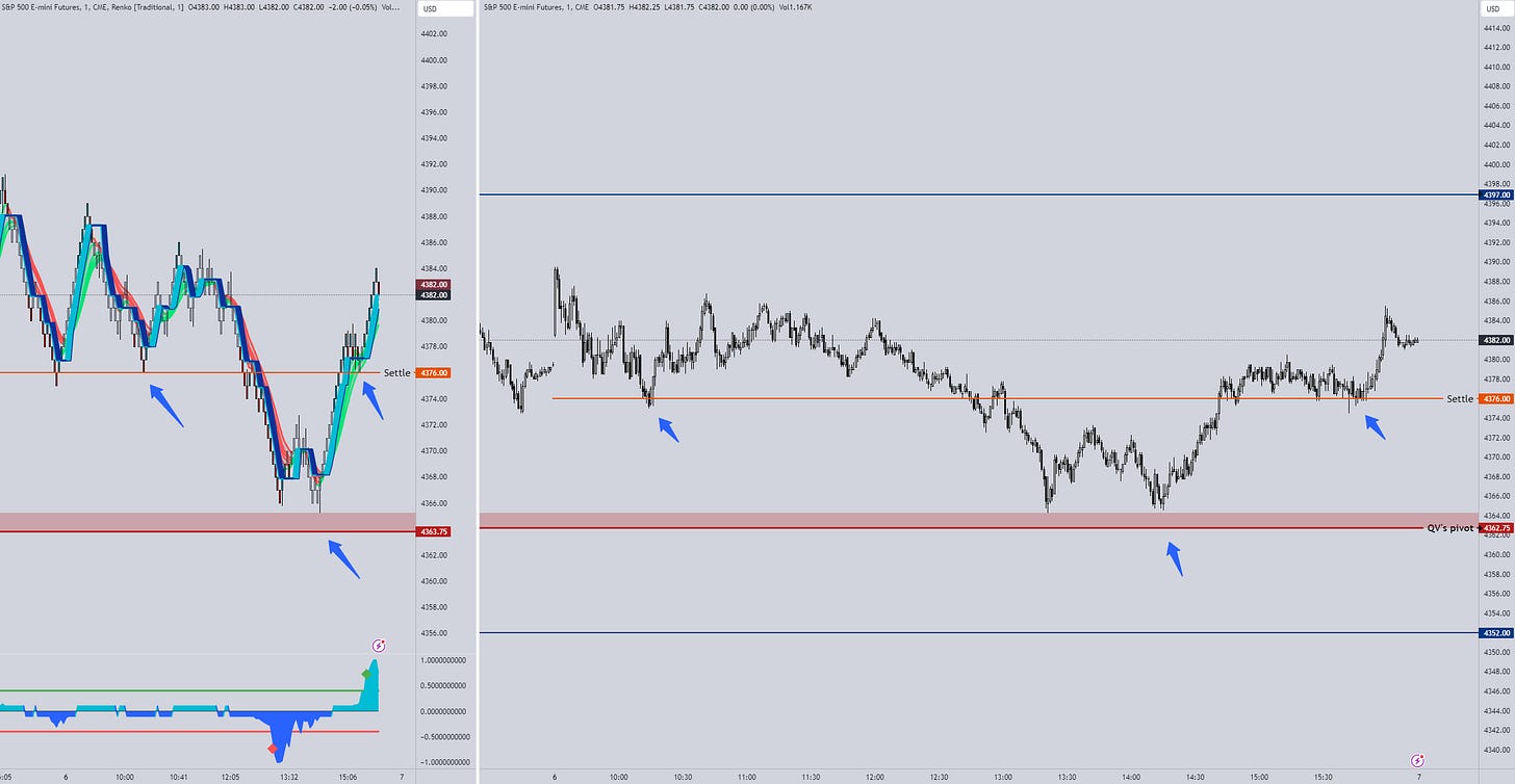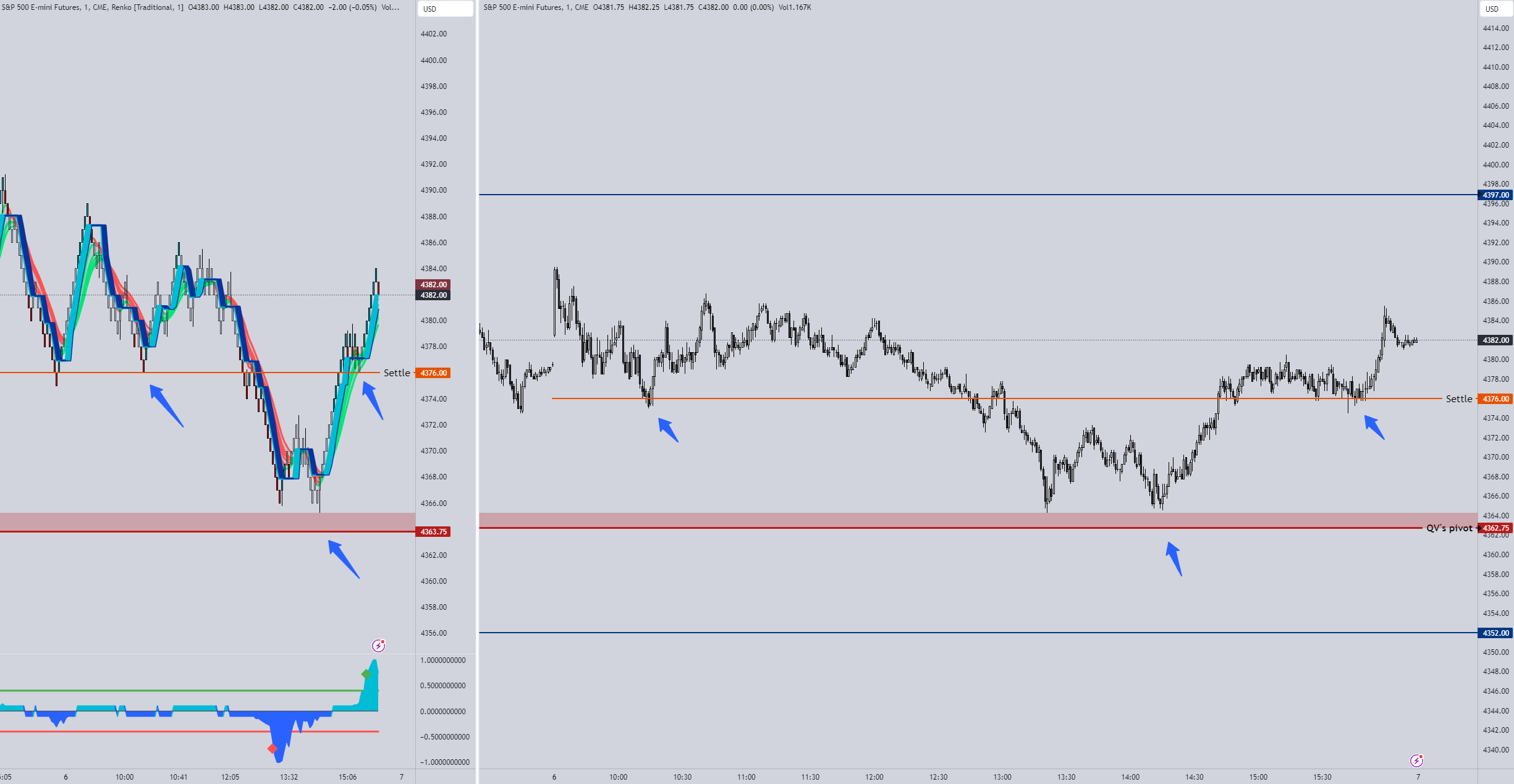Market made a bounce towards the settle at the open to correct the upside gap then moved towards our pivot of 4362 area which saw a double bottom and a move to the upside followed.