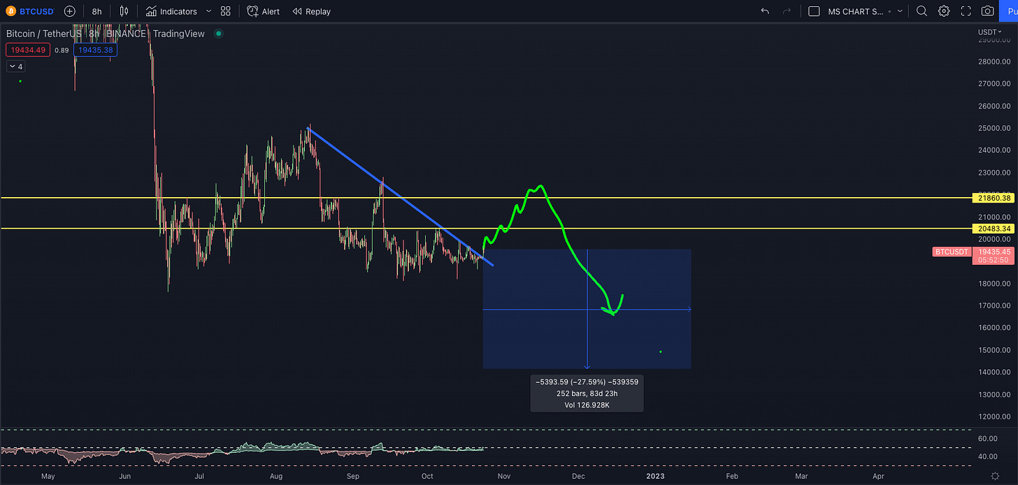 Shorts won't stand a chance. Then Q1 of 2023 I think we nuke down pretty hard. I'll be a long term HODL buyer in the 14-16K range.