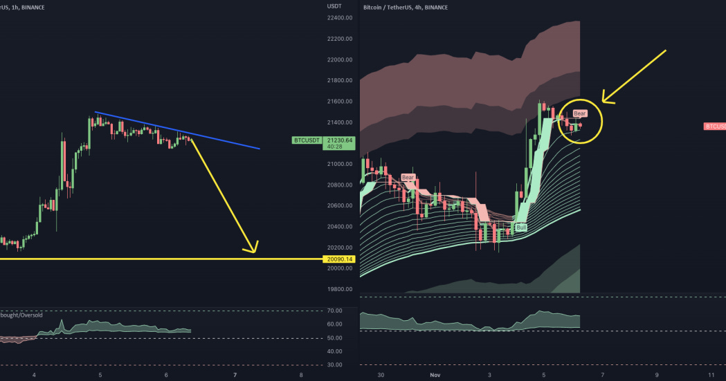 Looking at the 1H and 4H charts on BTC /USDT.