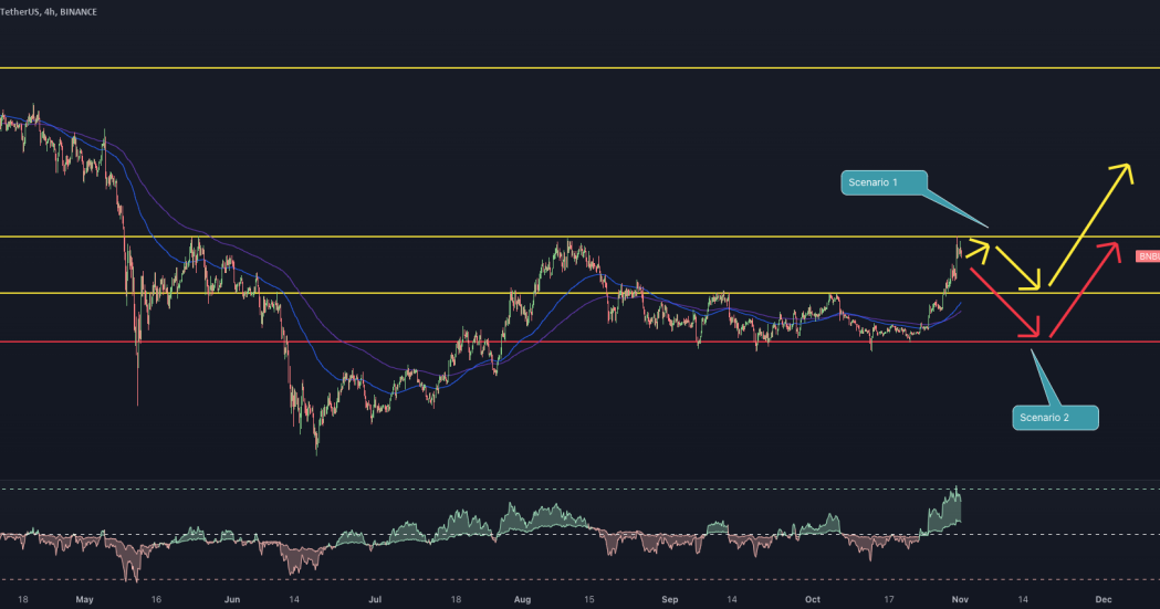 Some BNB/USDT thoughts on the 4H. Either way, not looking to take any trades until after the FOMC.