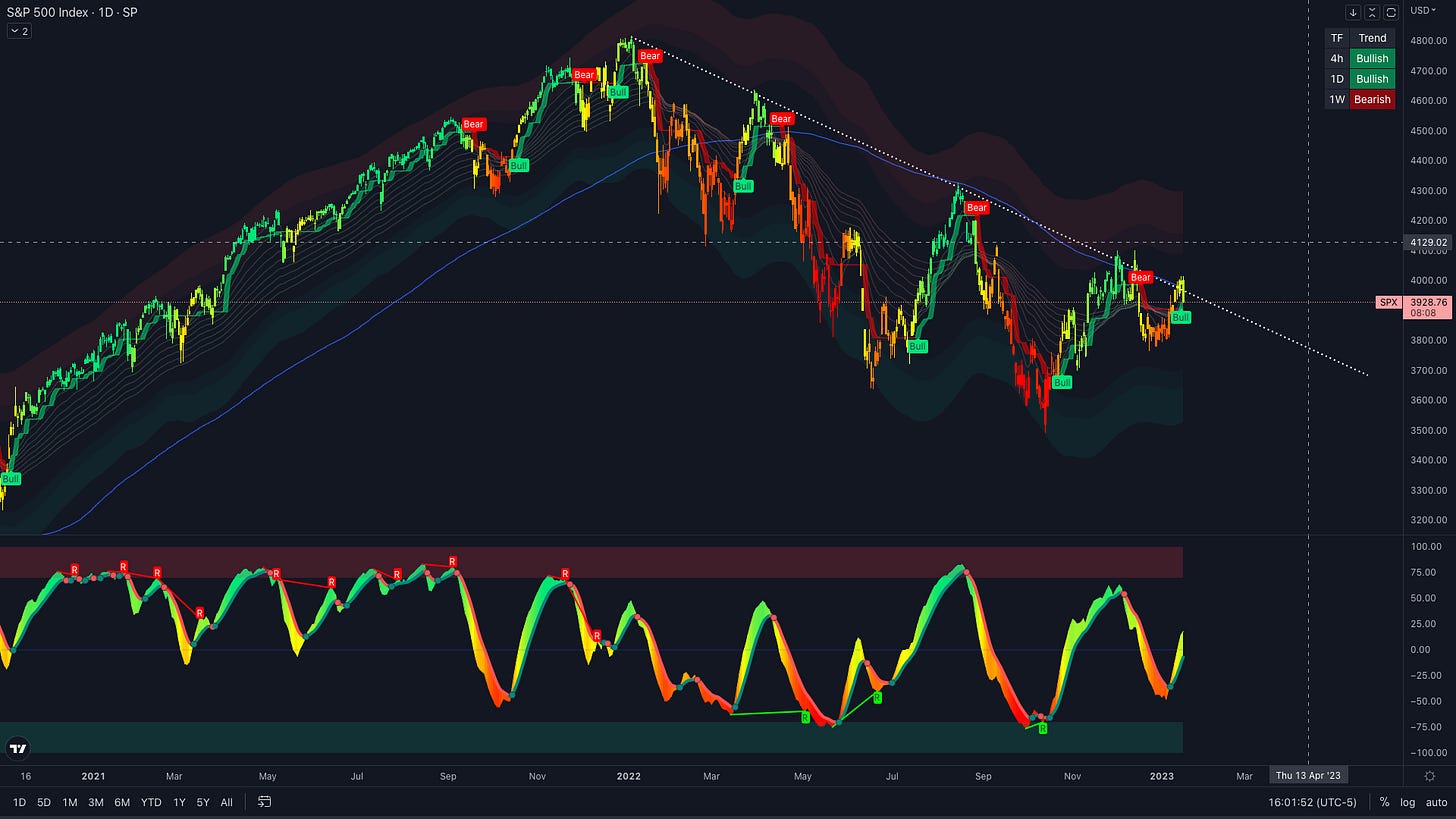 My counter to the bears are the 2 bullish alerts on both AlgoBuddy Premium 2.0 and Momentum 2.0 indicators that just printed on the daily SPX chart.