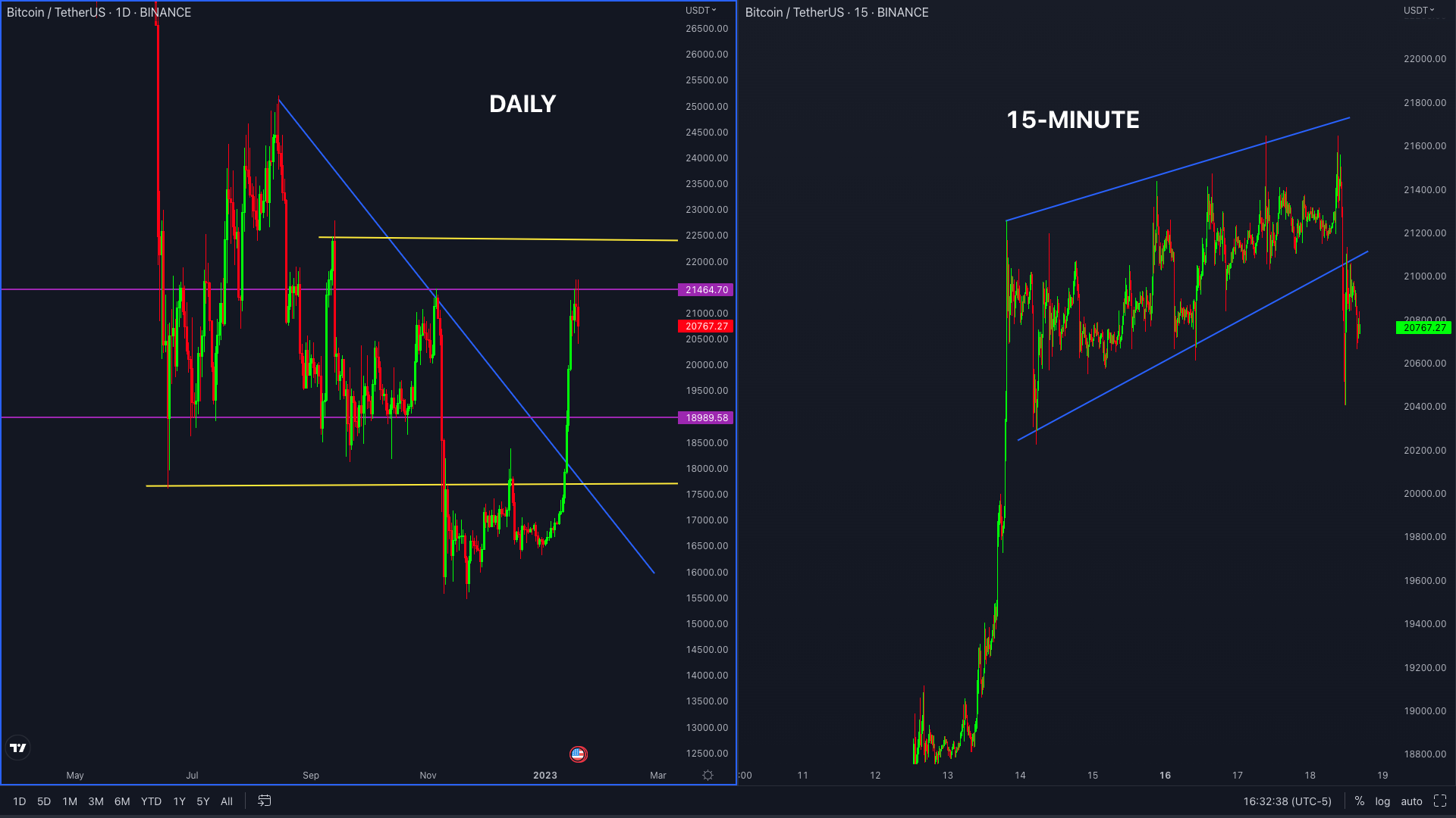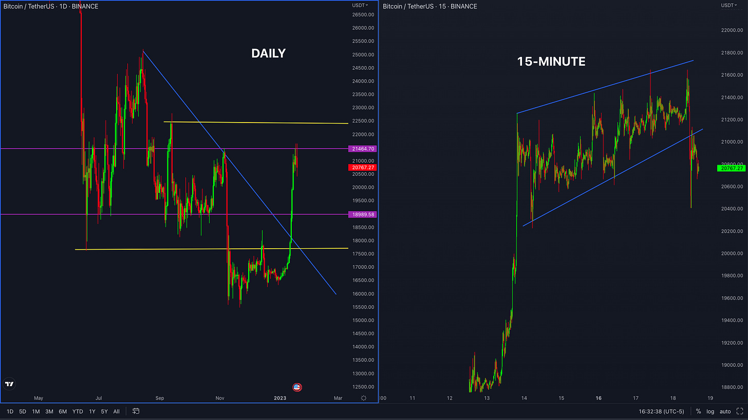 Looking at the Bitcoin Daily chart, we’ve witnessed a parabolic pump to start the year having broke $21,000.