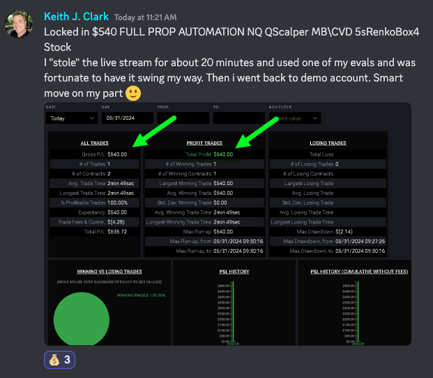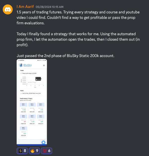 We've also had some amazing wins on the AUTOMATED tools with memmbers PASSING evals using the Prop Automation Program.