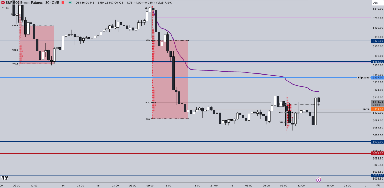Buyers and sellers continued to trade this pivot as fair price with the POC of the session sitting at 5100.
