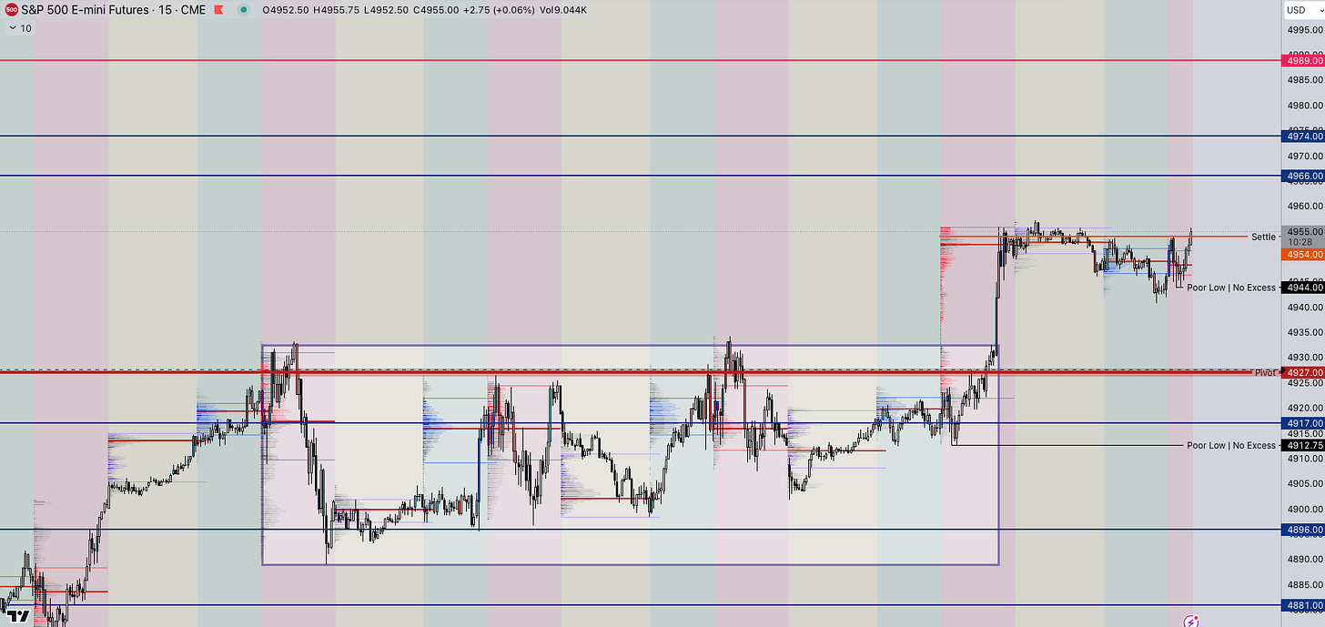 A rejection will put us right back into the balance bellow with bulls wanting to defend the key level of 4930 which was the top of the multi-day balance.