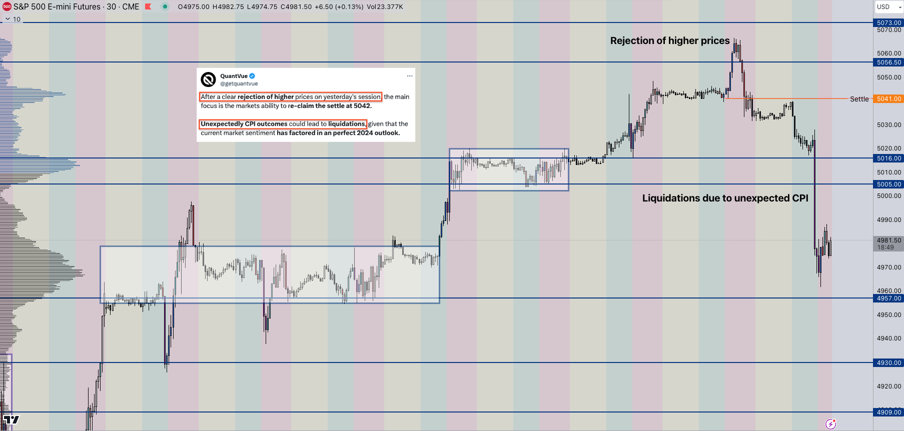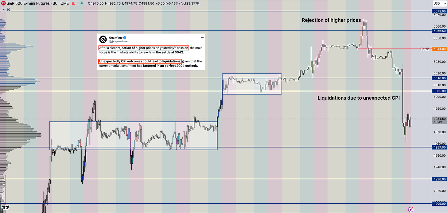 We can see how buyers took control of the market to push the prices towards our identified pivot of 5067 and using our TradingView suite to look at the volume profiles to add context and our indicator toolkit we were able to secure a nice R:R trade.