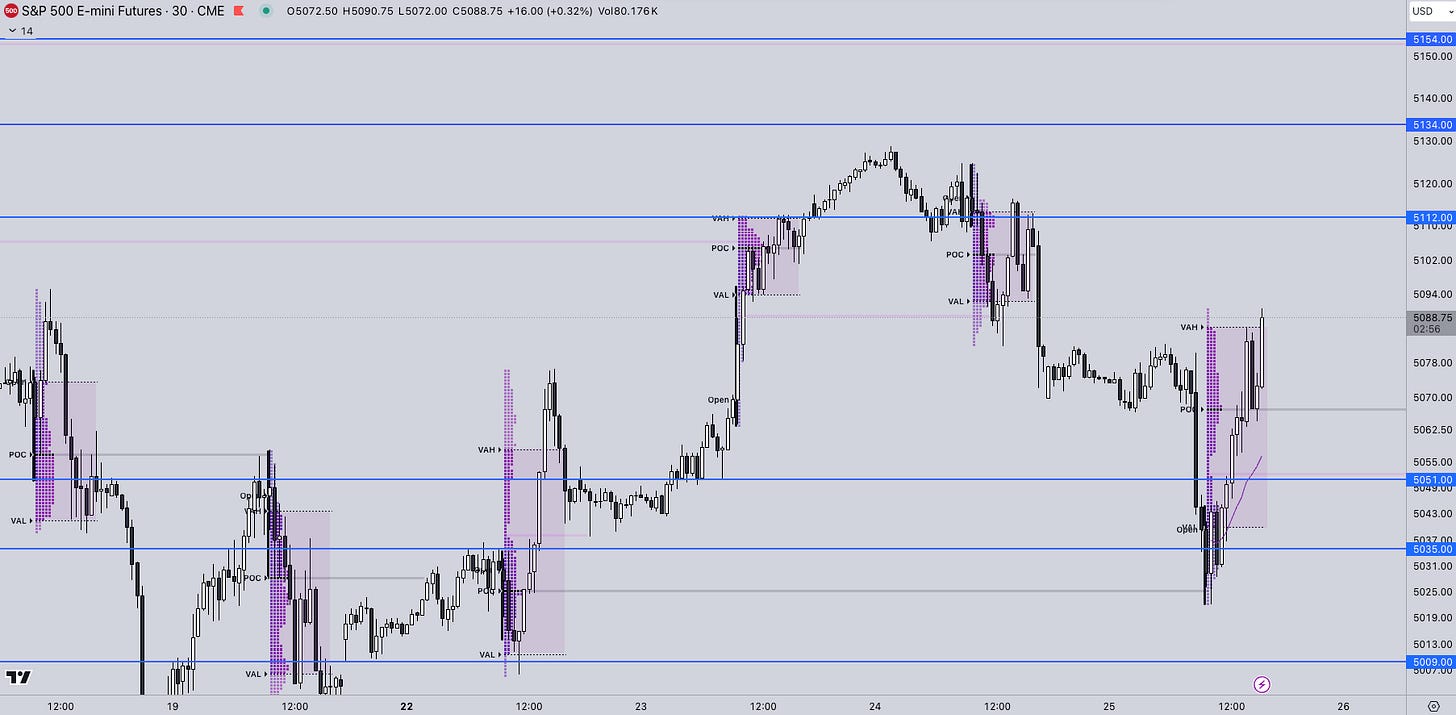 After the bearish scenario was hit with our final downside pivot at 5025 on today’s market report we’ve shared on X, early in the overnight and prior to the GDP release, our update was focusing for rotations to the upside.
