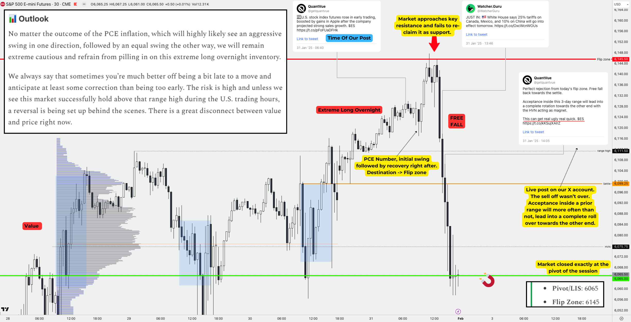 Could we have possibly known during the overnight session at 6:40am ET, what the PCE number would be or that there would be “news” regarding tariffs as the market approached the PM hours? No.
