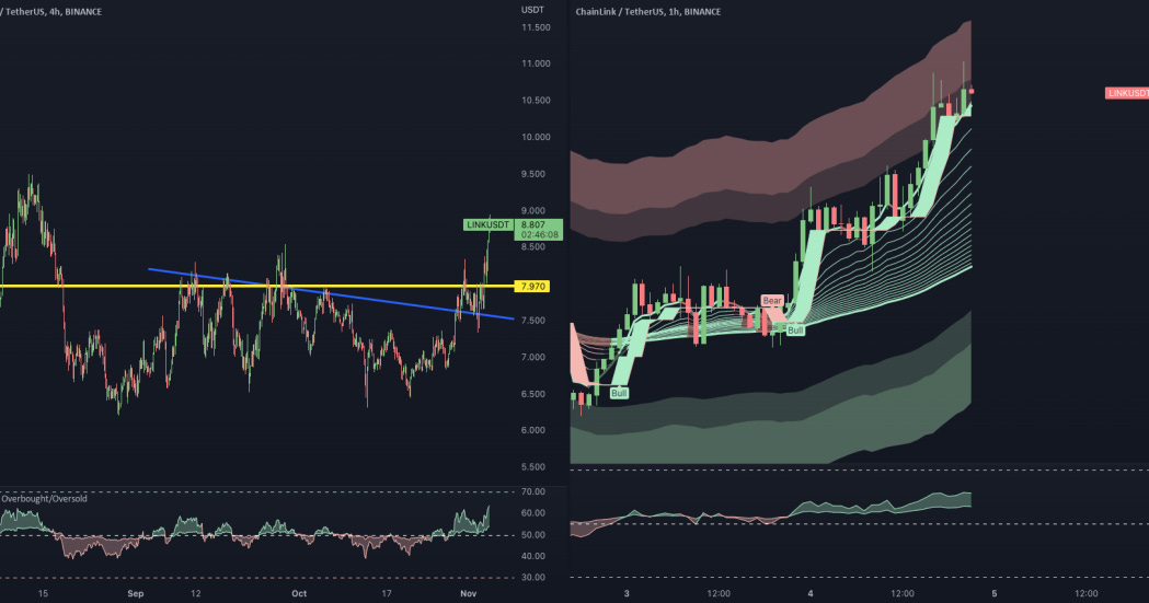 Looking at one of our favorite cryptos; Chainlink $LINK on the 4H and 1H charts.