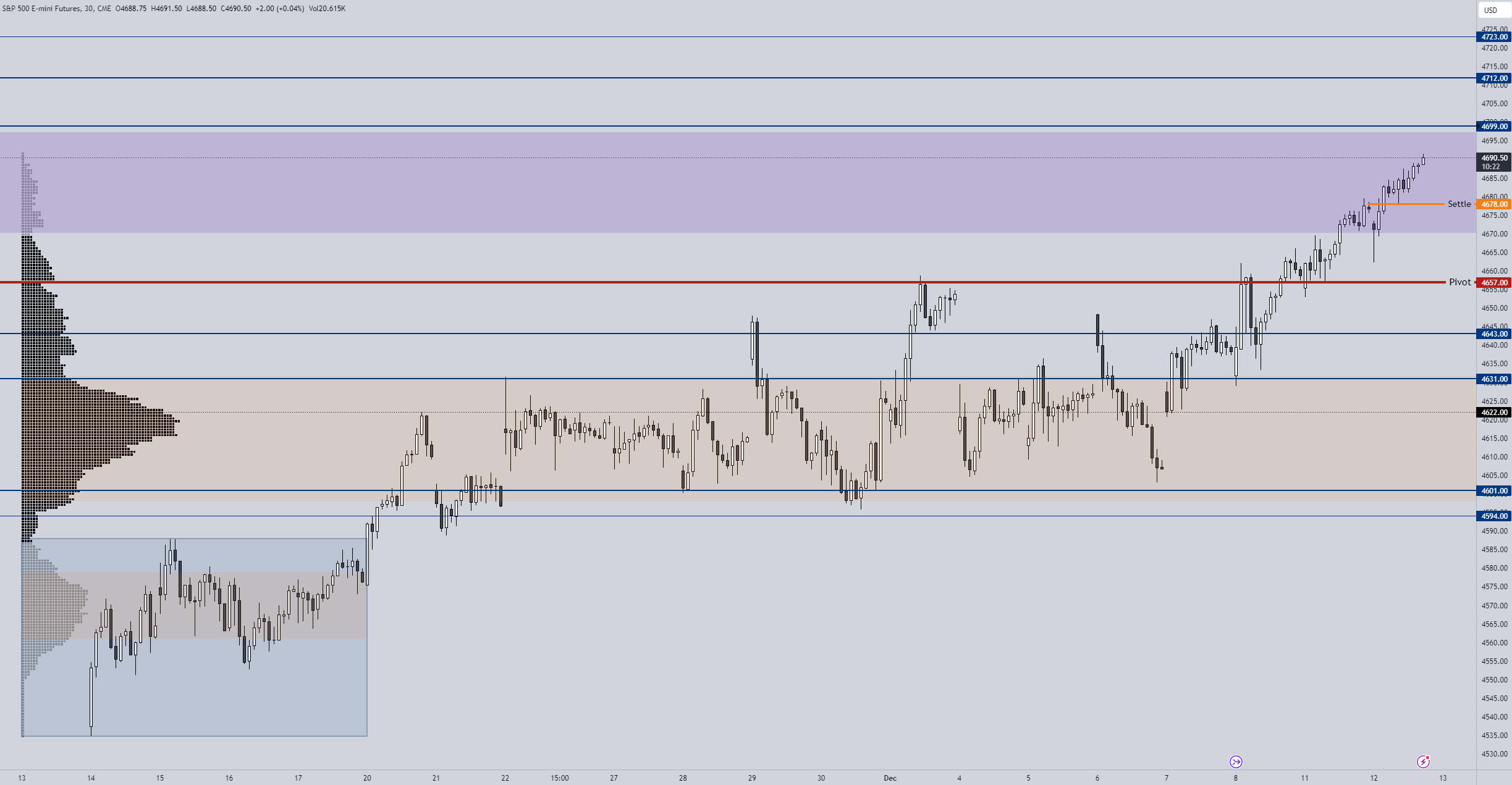On the downside we’ve want to see buyers stepping in to defend above 4631 to prevent acceptance back inside the lower multi-day range and on the upside, a clear acceptance above 700 can bring new year highs above 4733.