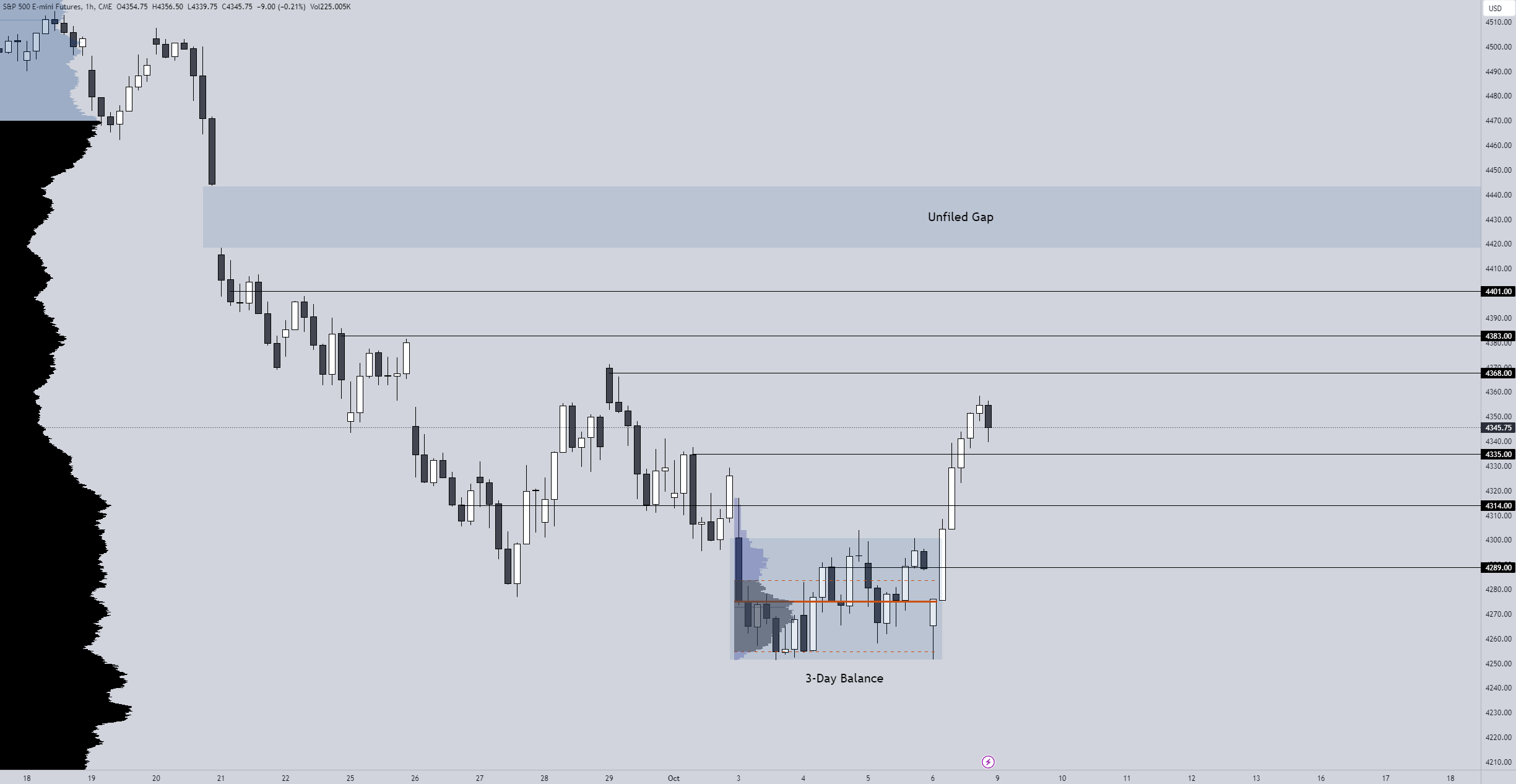 After a 3-day balance, market broke out to the upside targeting the previous balance area above.