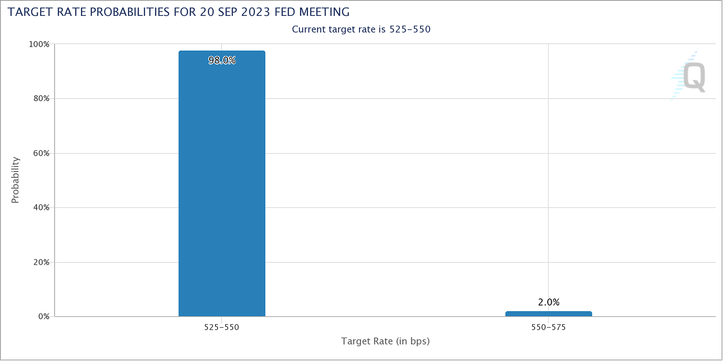 The Fed is scheduled to meet on Sept. 19 and 20 followed by a press conference with Fed Chair Powell at 2:30 p.m. ET on Wednesday.