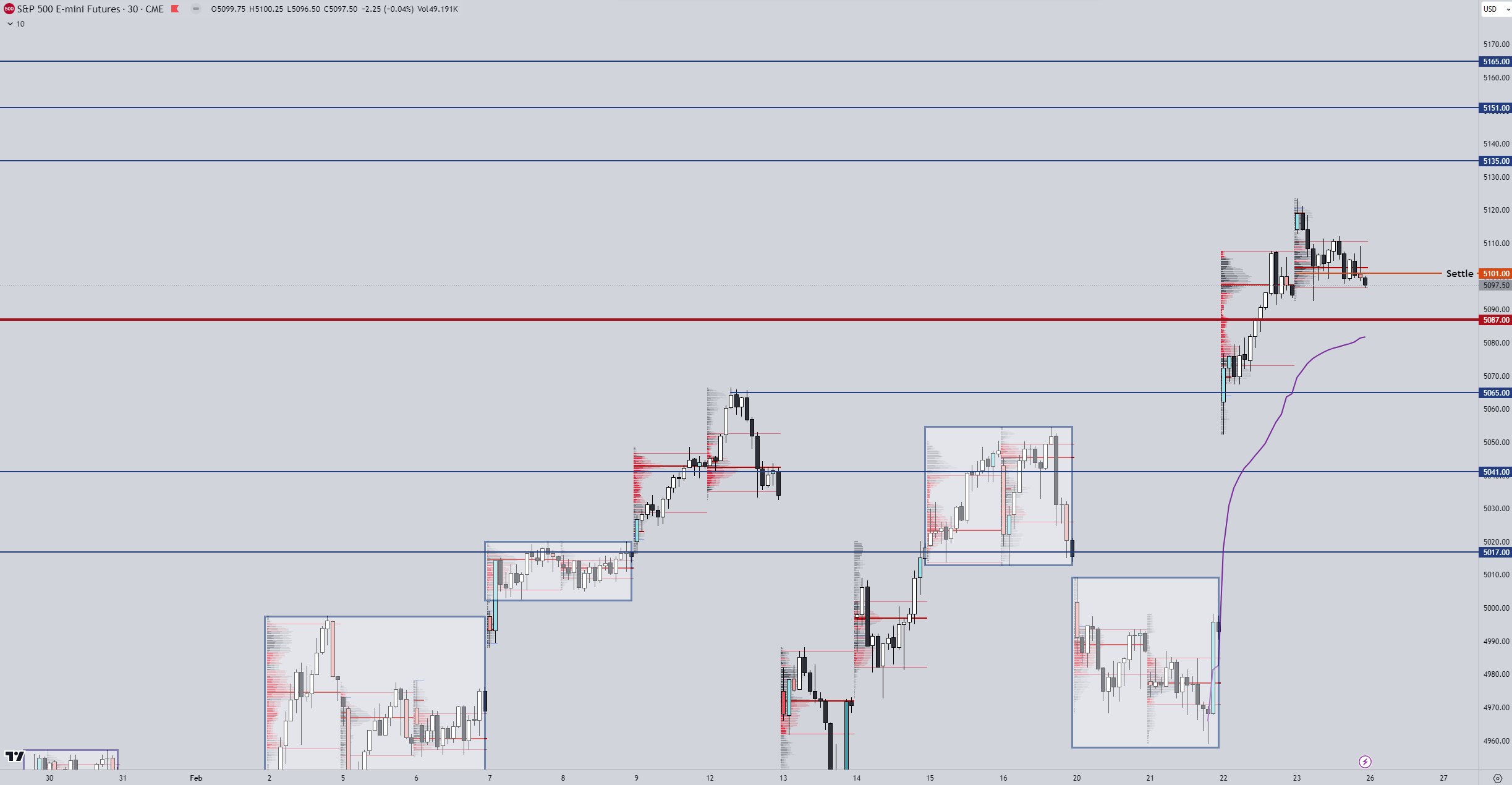 Heading into the week ahead, the goal is to monitor for acceptance of new prices or the lack of.