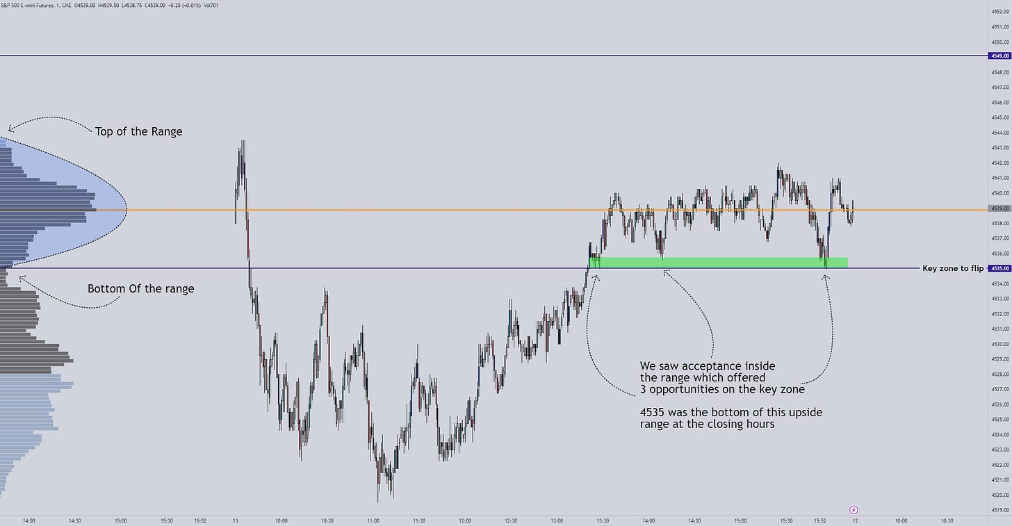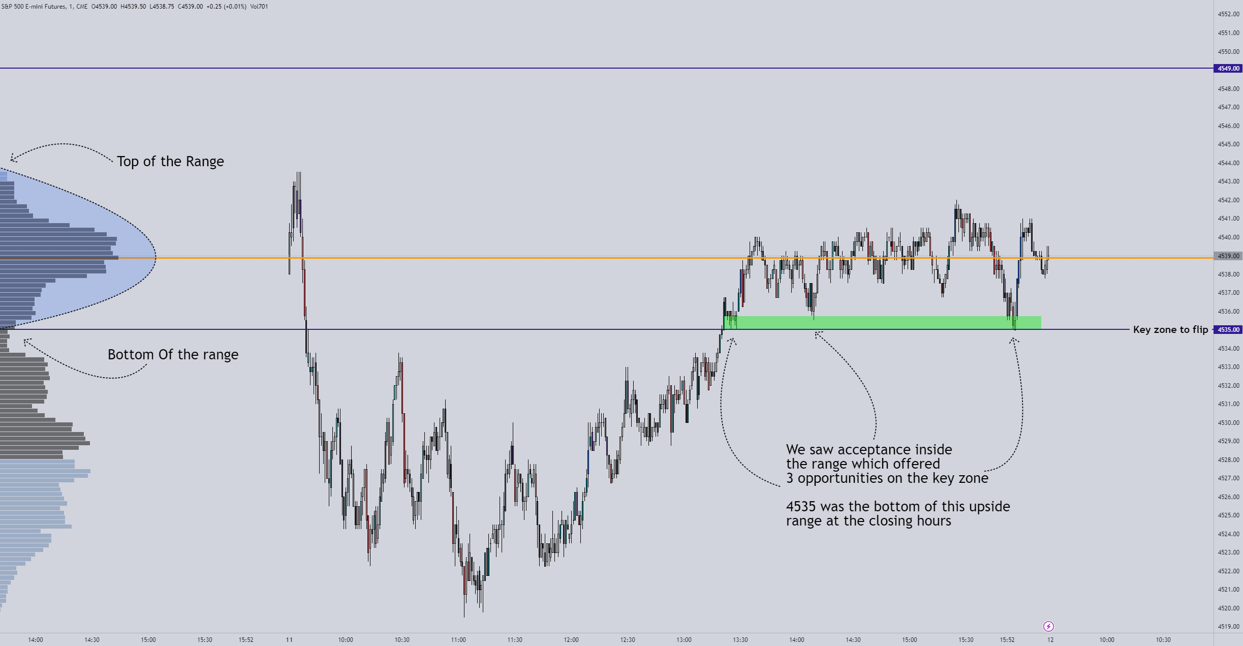 The volume profile on the left side can showcase that zone was the perfect bottom of this upside range formation at the closing hours.