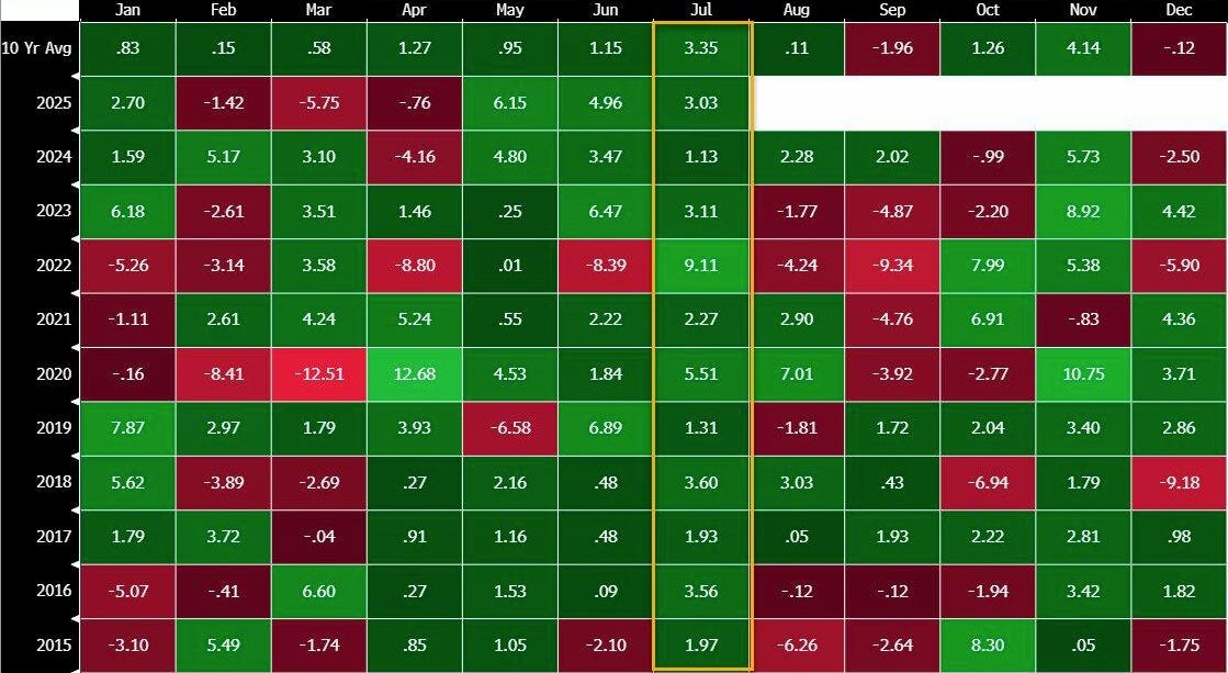 The market continues its relentless melt-up levitation as it has every single July for the past decade.
