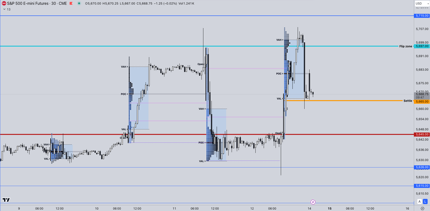 With the market seeing another rejection off of 5700s our main focus will be rotational activity and overlapping value areas as the market will potentially seek to balance itself.