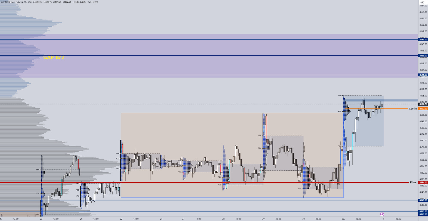 The key area of 4605 we’ve highlighted thru the overnight session here acted as the top of the session with the market looking above and failing to hold.
