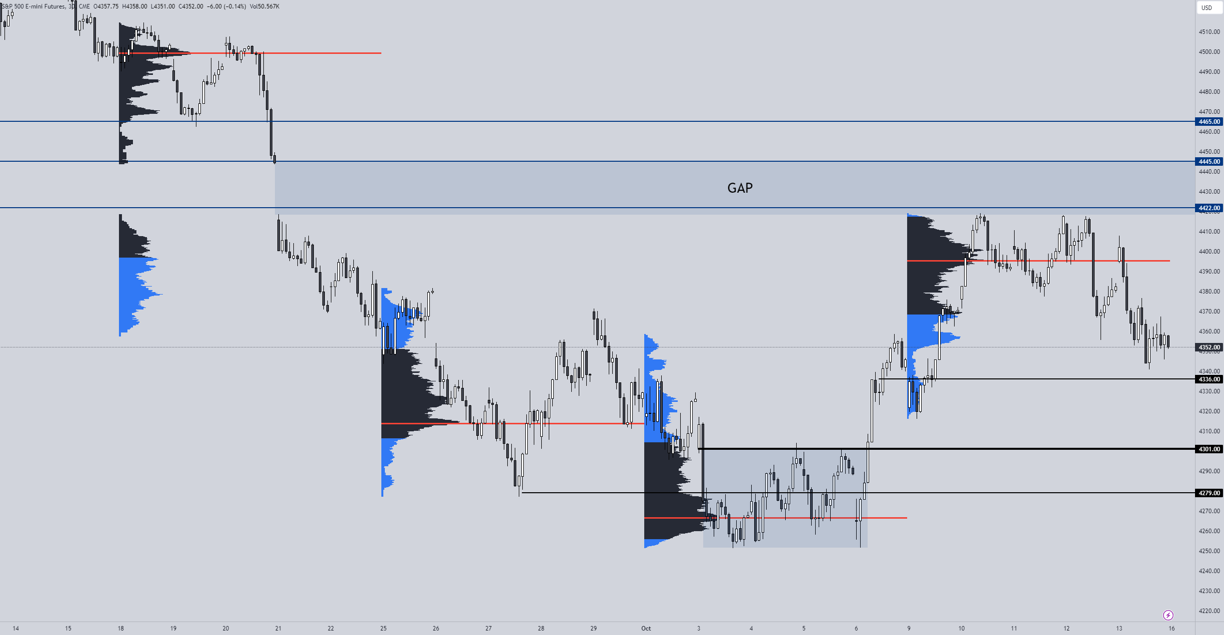 The worst case scenario for the market is to fall back bellow the 4300s. That can lead to acceptance into the previous 3-day range that can see a possible print of another lower low bellow.