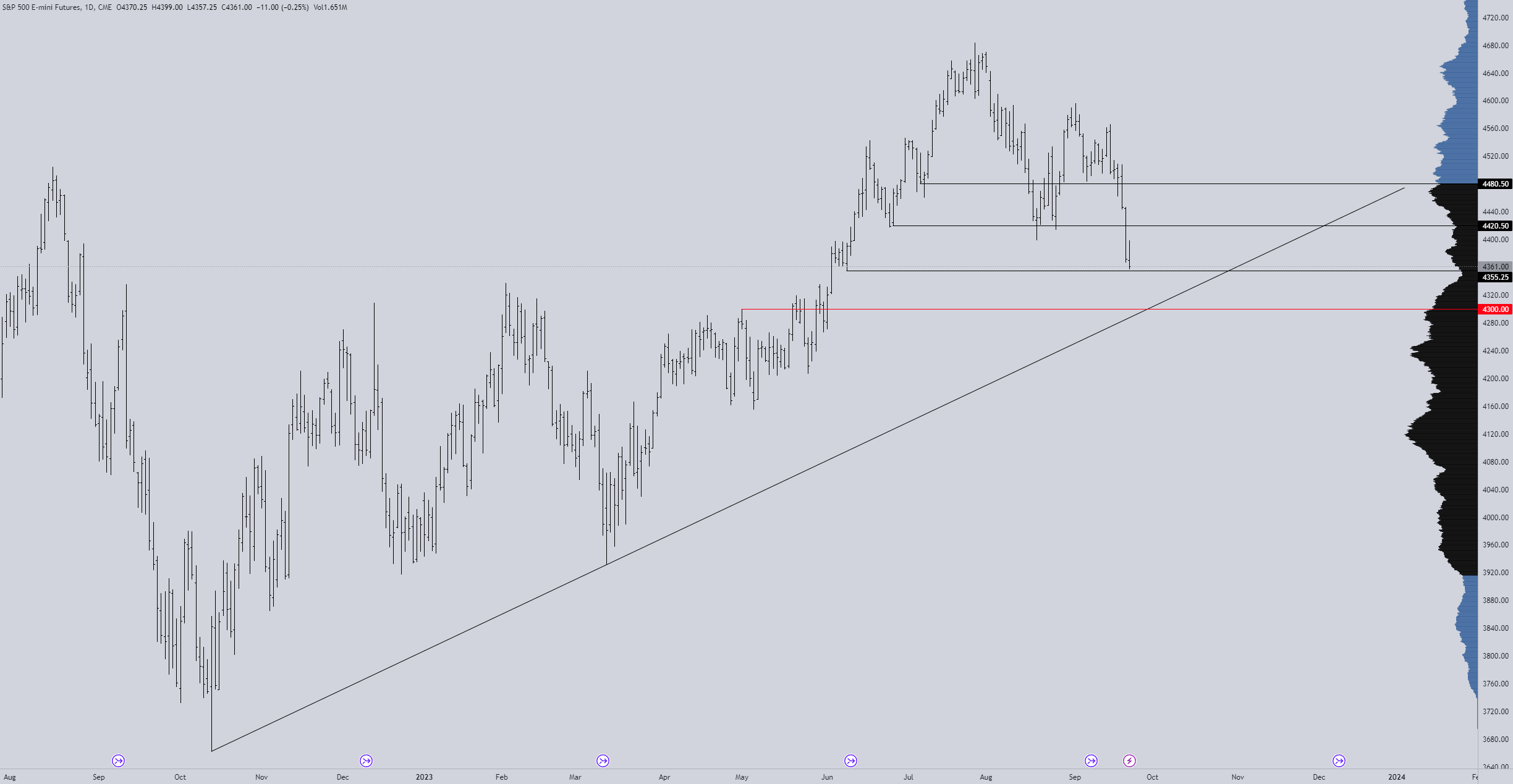 Failure to hold 4300 will place the market back to a 13 Month range.