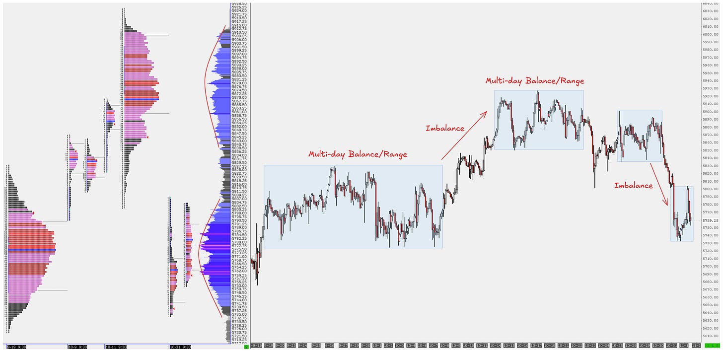 Recent price action has been reflecting these exact concepts. It usually takes some type of catalyst to change the perception of value and push the market into an imbalanced state.