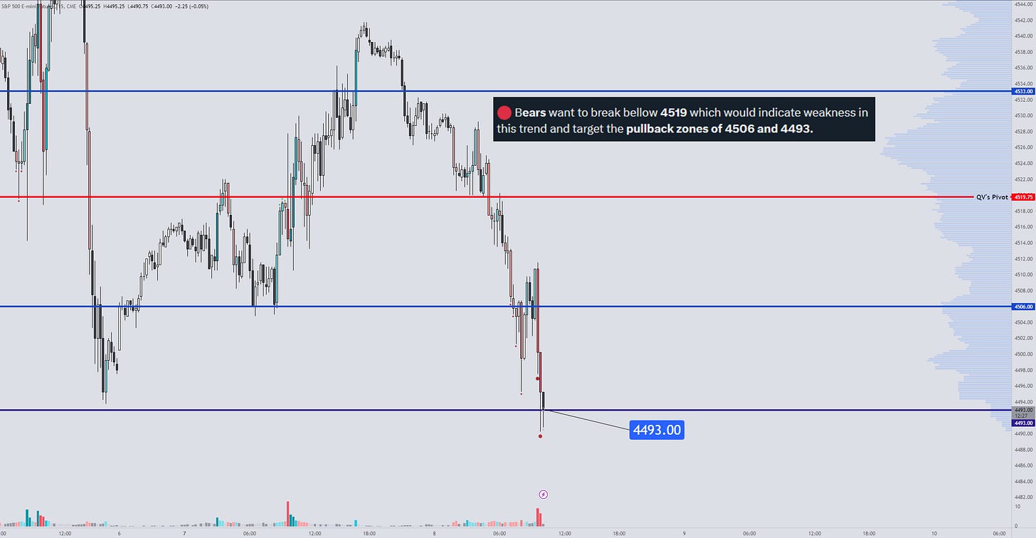 finding acceptance bellow the 4500 area could lead into a roll over targeting the lower end of the distribution which would not look good if bulls don’t claim and hold above 4500 again until the end of the session.