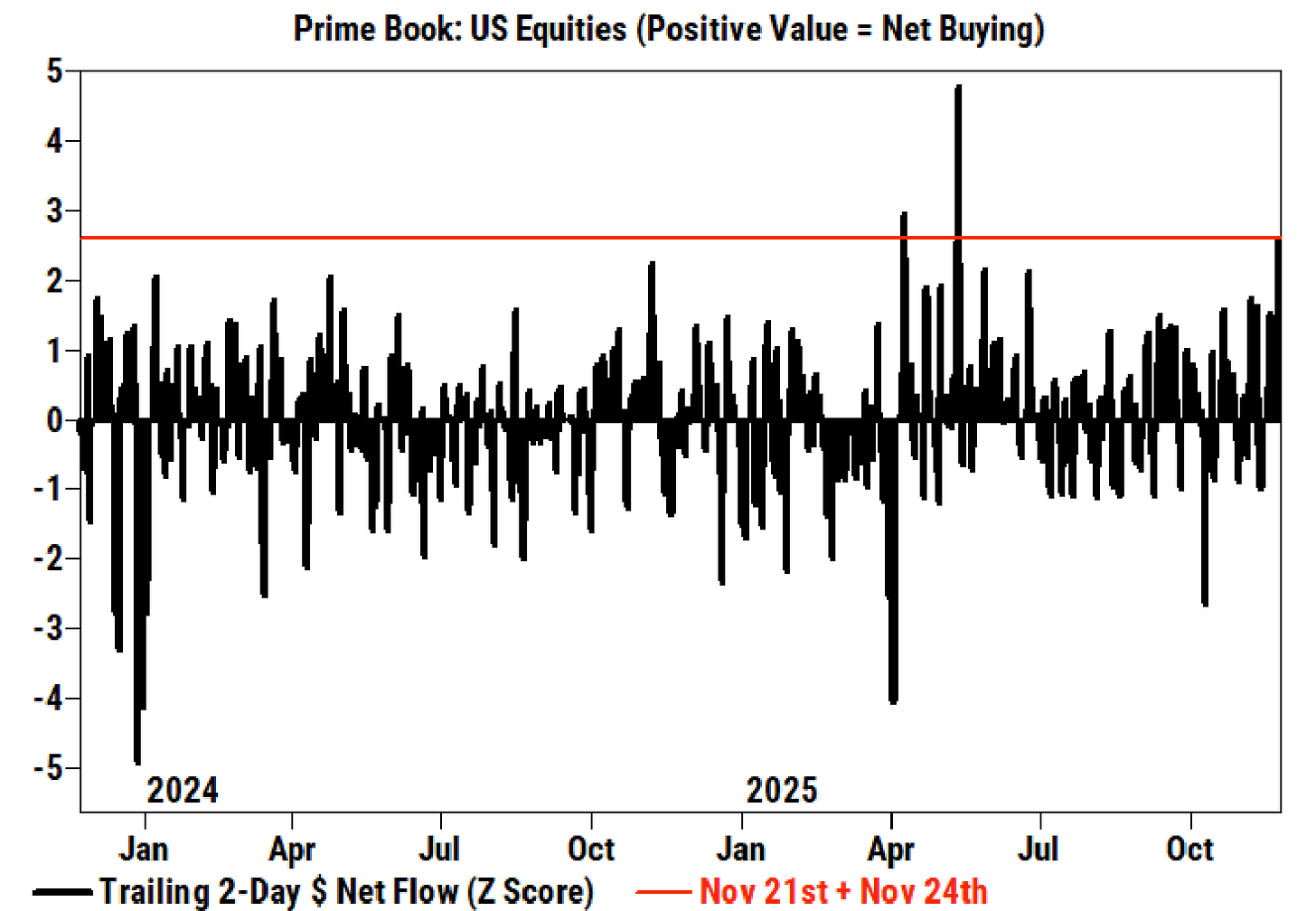 In cumulative $ terms, the pace of net buying on Friday and Monday combined was the largest over any two-day period in more than six months and one of the largest in the past two years.