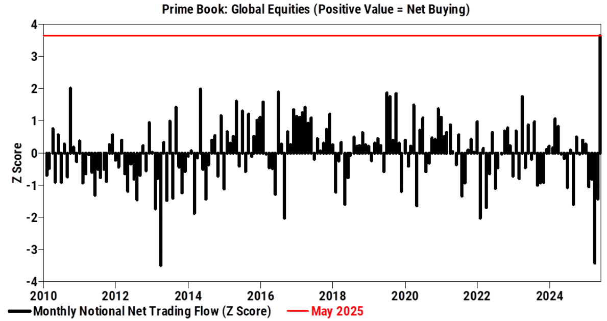 This comas after May saw the largest notional buy of global equities on record (the pace has slowed in June, but still skews net to buy).