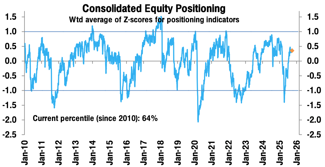 From the data we see, however, equity positioning is only moderately overweight, and we see growth, not rates, as the primary driver to focus on.