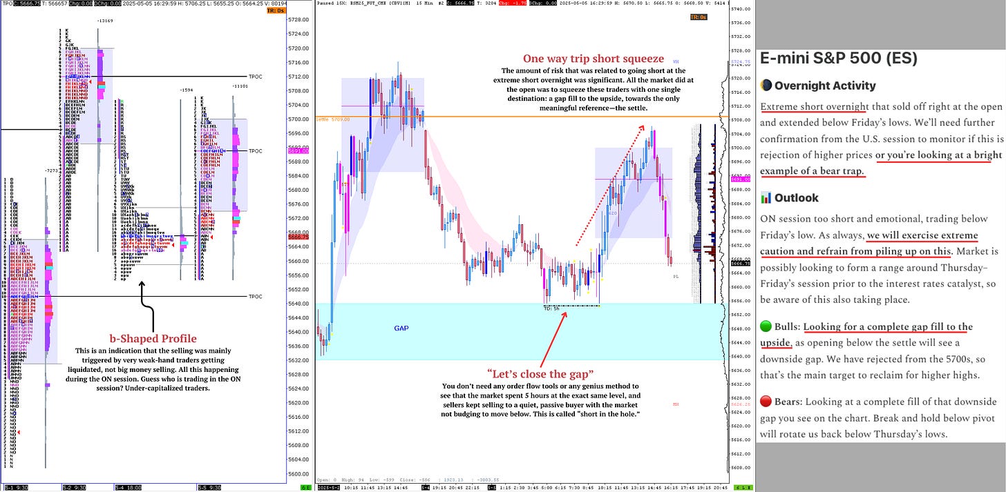 “Short-covering fuel.” Everyone that was too short during the ON was squeezed out, with the only meaningful reference to look for profit-taking being the settle we had on the chart. Meaning, our expectation was that the market had significant room to go to the upside, which is why we didn’t place anything in between.