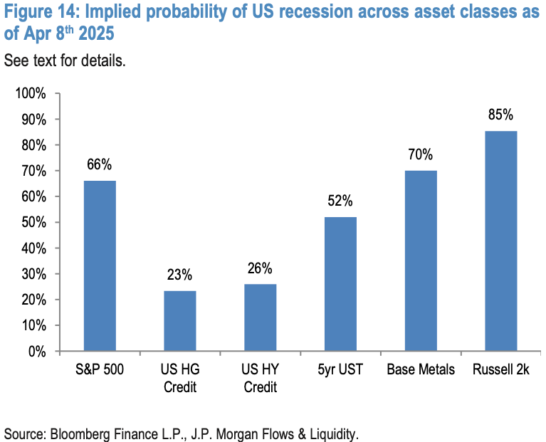 US equity markets, continue to price in significantly more elevated recession risk than credit markets.