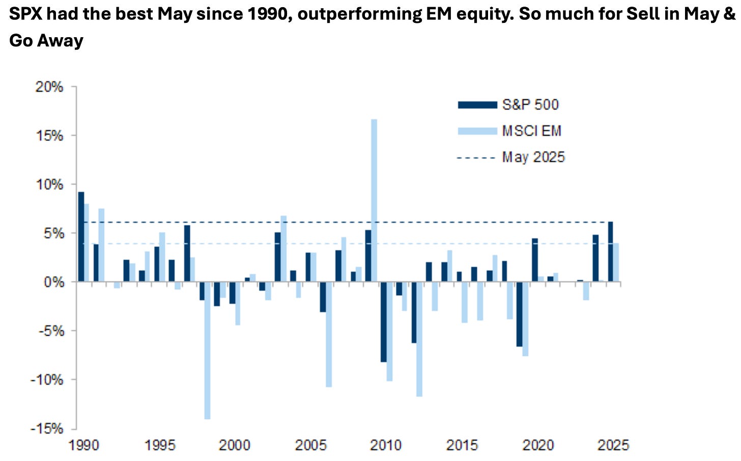 Positioning and sentiment indicators are balanced and so there is still room to re-risk. In the near-term absent major shocks, risks are tilted to a further melt-up in stocks.