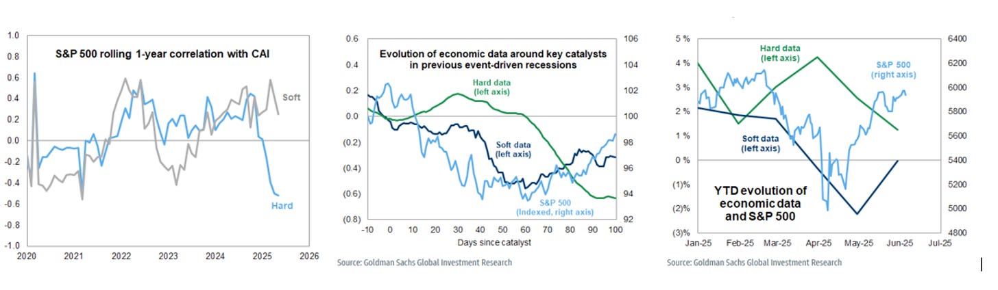 SPX has rallied alongside the soft data rebound, as has typically been the case in past catalyst-driven growth shocks.