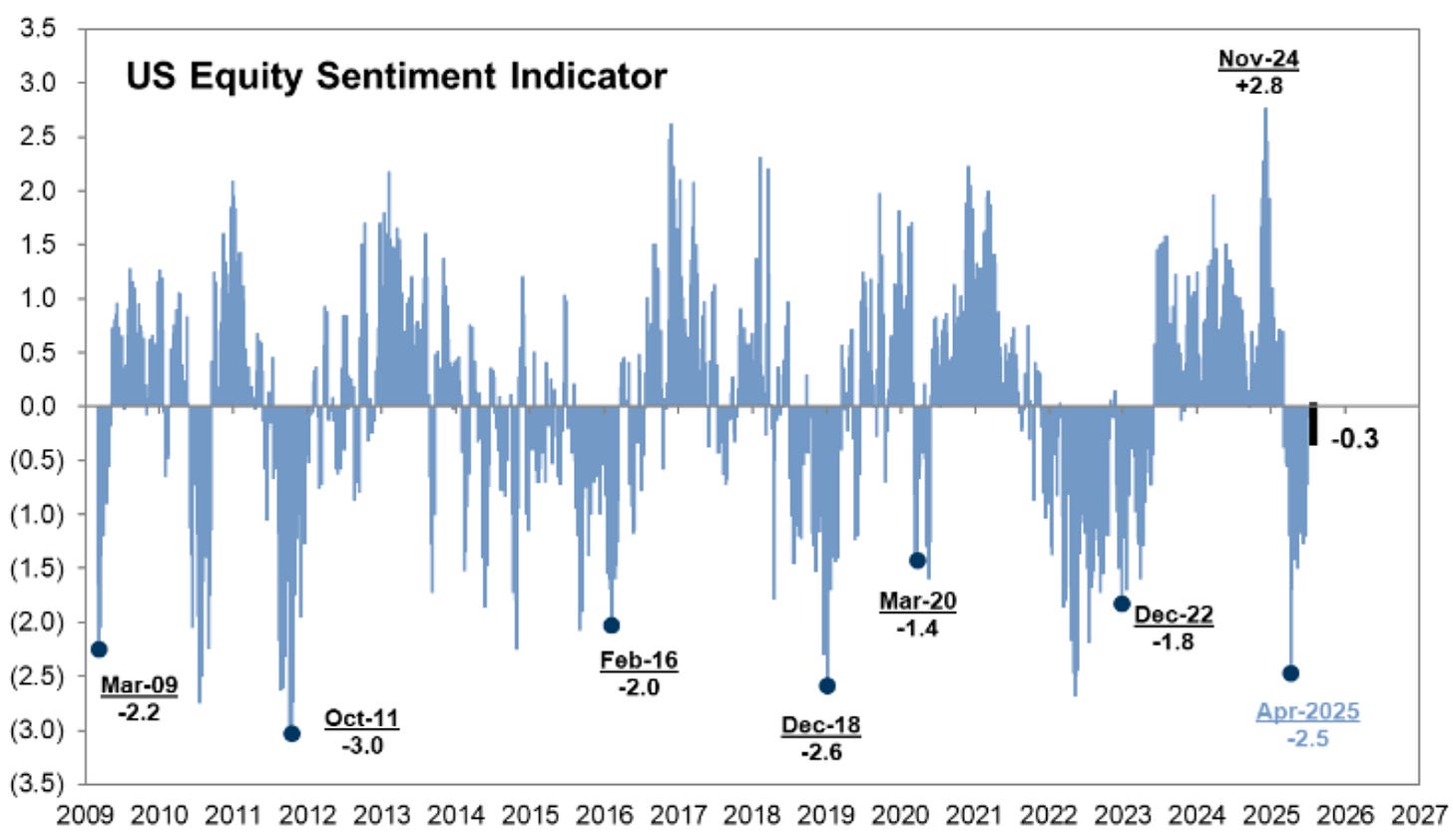Equity investor positioning remains in neutral territory suggesting further room to add exposure to equities. However, if the jobs report is too strong, it could constrain the performance of equities as investors walk back expected Fed easing.