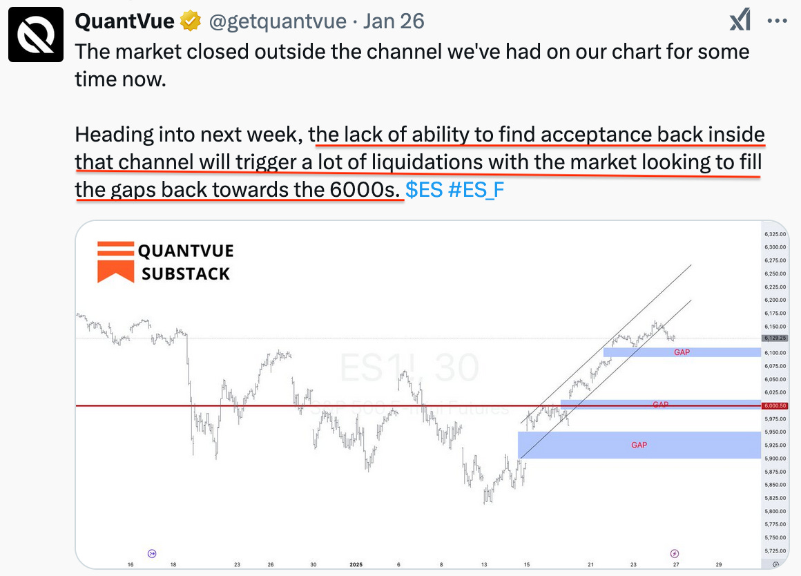 On Sunday, we shared this post over on our X account, highlighting the bearish close outside this channel and the consequences of what was to come if the market failed to find that acceptance quickly back inside.