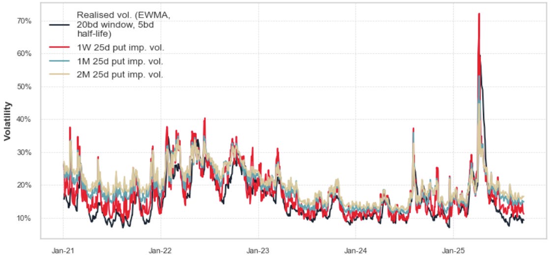 This means that the steep term structure tells us that investors are bullish on equities in the near term but lack conviction further out.