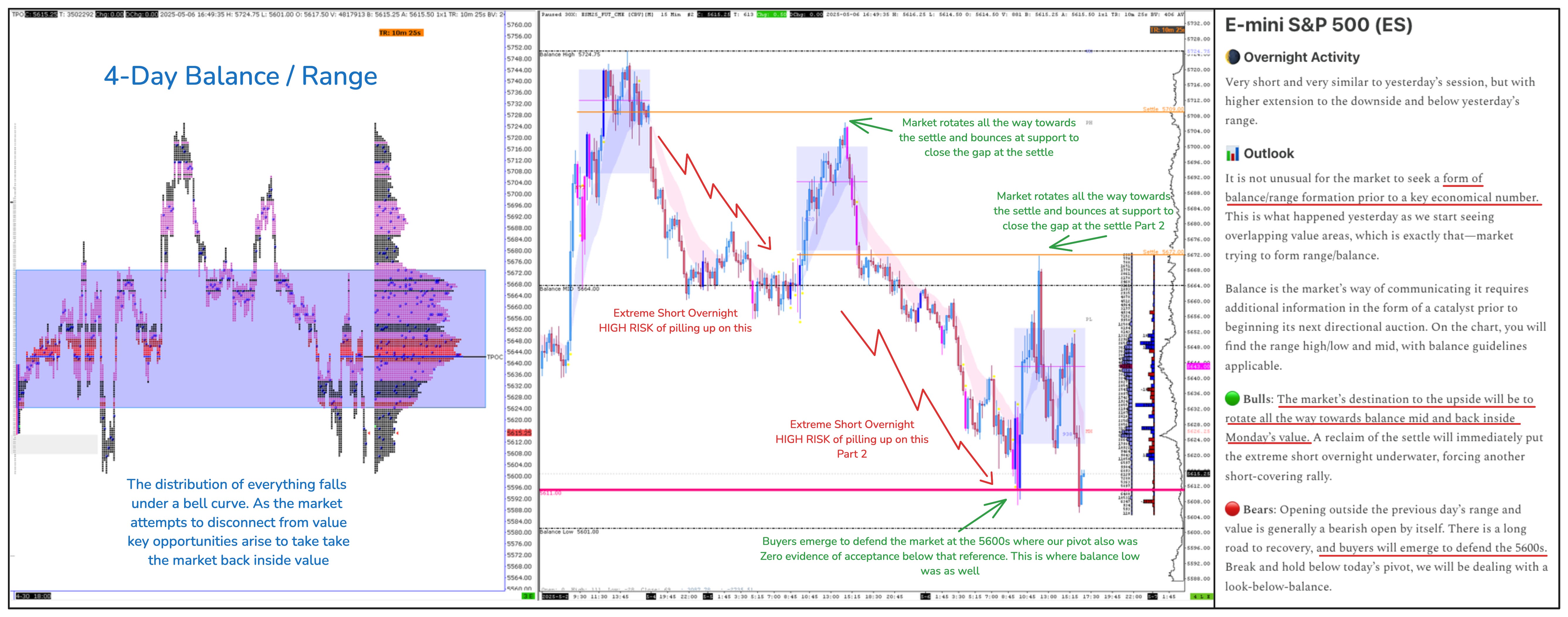 How could we possibly know two days before that the market was looking to come into short-term balance and form a range? Why did we warn about the risk associated with “piling up” on an extreme short overnight?
