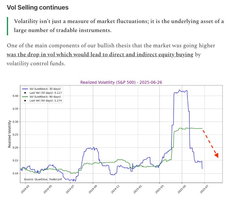 We’ve written a short article on the impact of vol-compression, a main component of our bullish thesis we’ve had since the market was below the 5000s, in today’s brief.