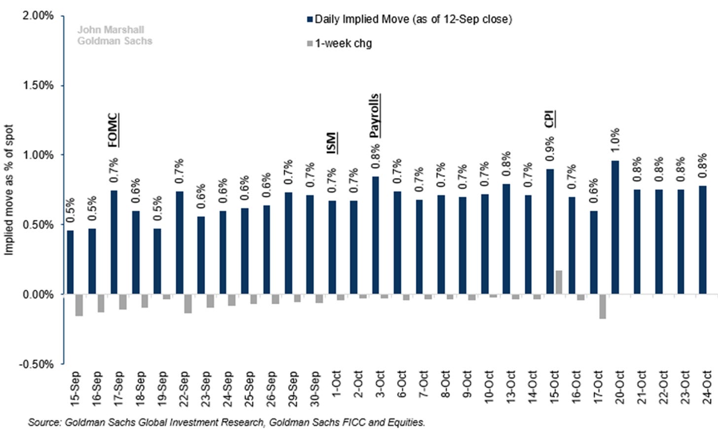 Options investors are focused on the potential for volatility on FOMC day but see relatively modest moves for the remainder of the month.