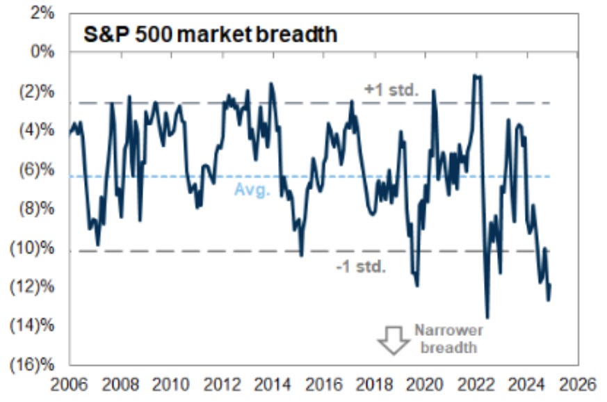 Breadth has slightly improved since last week and has changed gradually in either direction, which, in our view, supports the case for strategic rotations rather than a structural market sell-off.