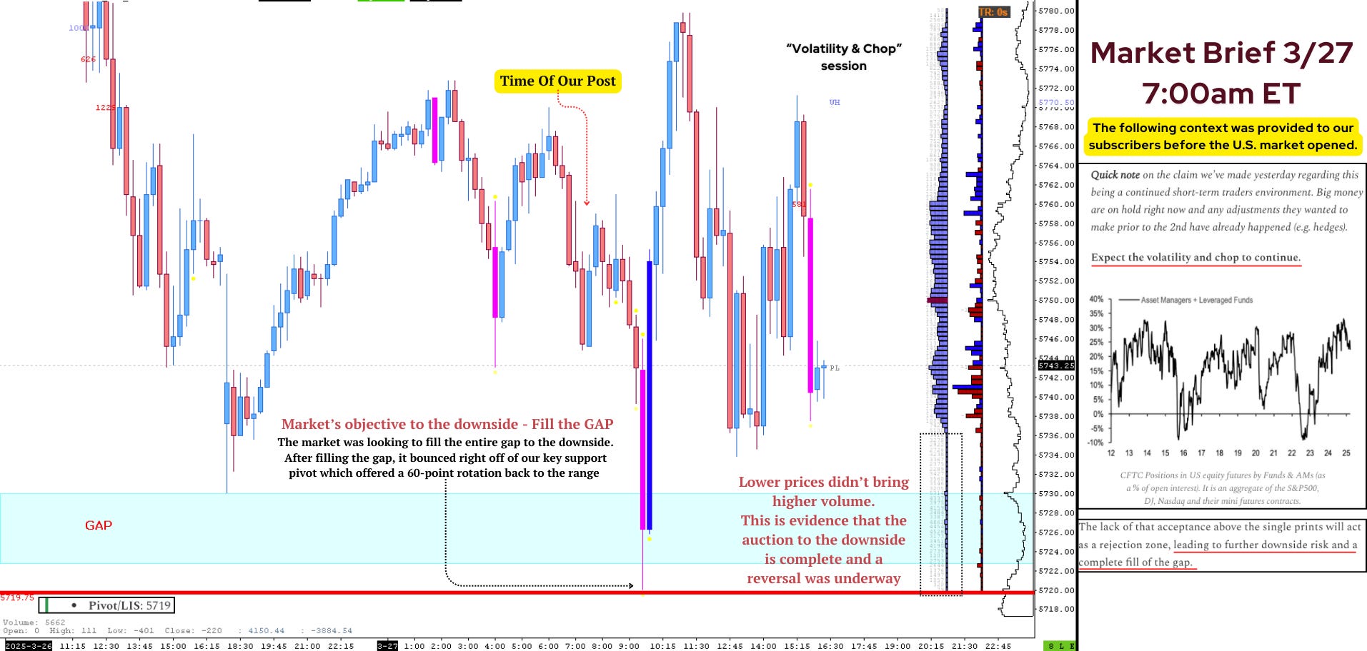 This quote is nothing more than an understanding of who you’re competing against during the session. It is simply a nuance to add to your narrative. You can expect very little follow through when breaking through some of these obvious references such as a gap fill. This is because of lack of commitment of volume and momentum that short term traders typically can not provide.