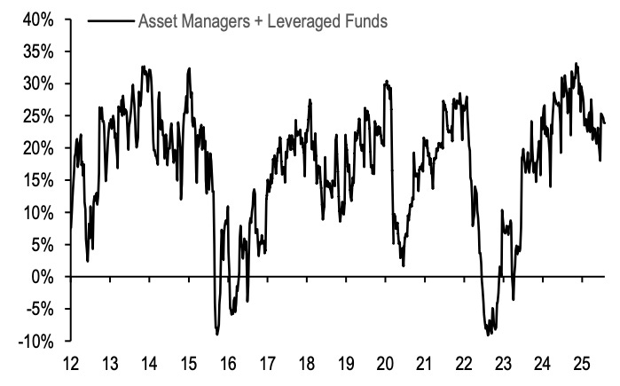 The moves caught some institutional investors off guard, especially leveraged funds that have recently increased shorts in the Russell 2000. AMs and LFs have yet to show signs of chasing the rally to any serious extent.