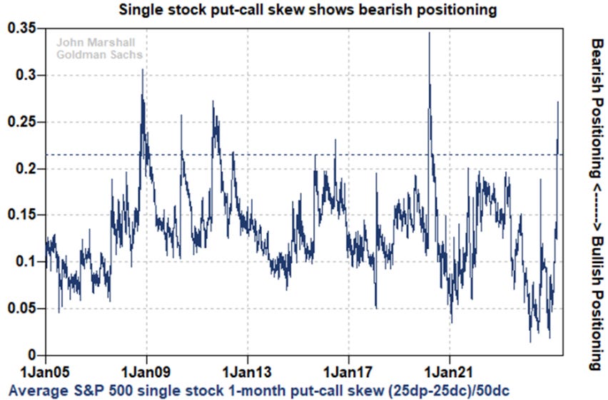 Investors are still positioned for downside asymmetry in stocks. We continue to see fear levels as extreme relative to the current environment where catalysts for upside asymmetry are more likely than downside.