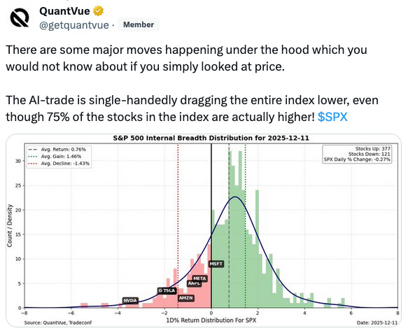 Yesterday, we shared a post on X pointing out that, despite what the index appeared to be showing, the underlying market was actually displaying notable strength beneath the surface.