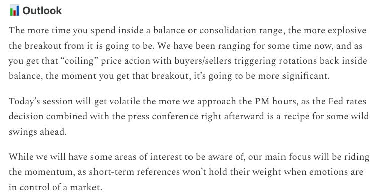 Today’s deep dive into the prior session begins with a snapshot of the exact outlook we shared in yesterday’s market brief, as it truly highlighted the importance of how events unfolded right afterward.
